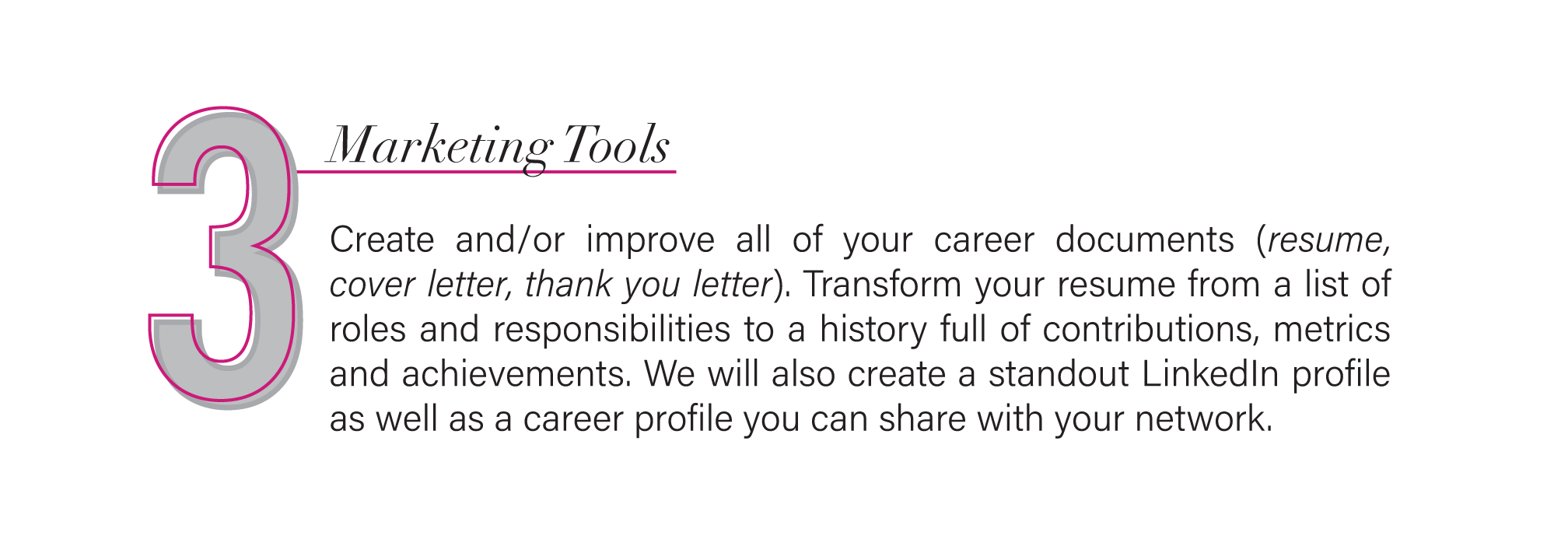 Magenta Legacy will help to identify your key strengths and accomplishments while accessing career interests, goals and aspirations. Together we will design a road map to achieve your career goals and devise strategies for how to get there.
